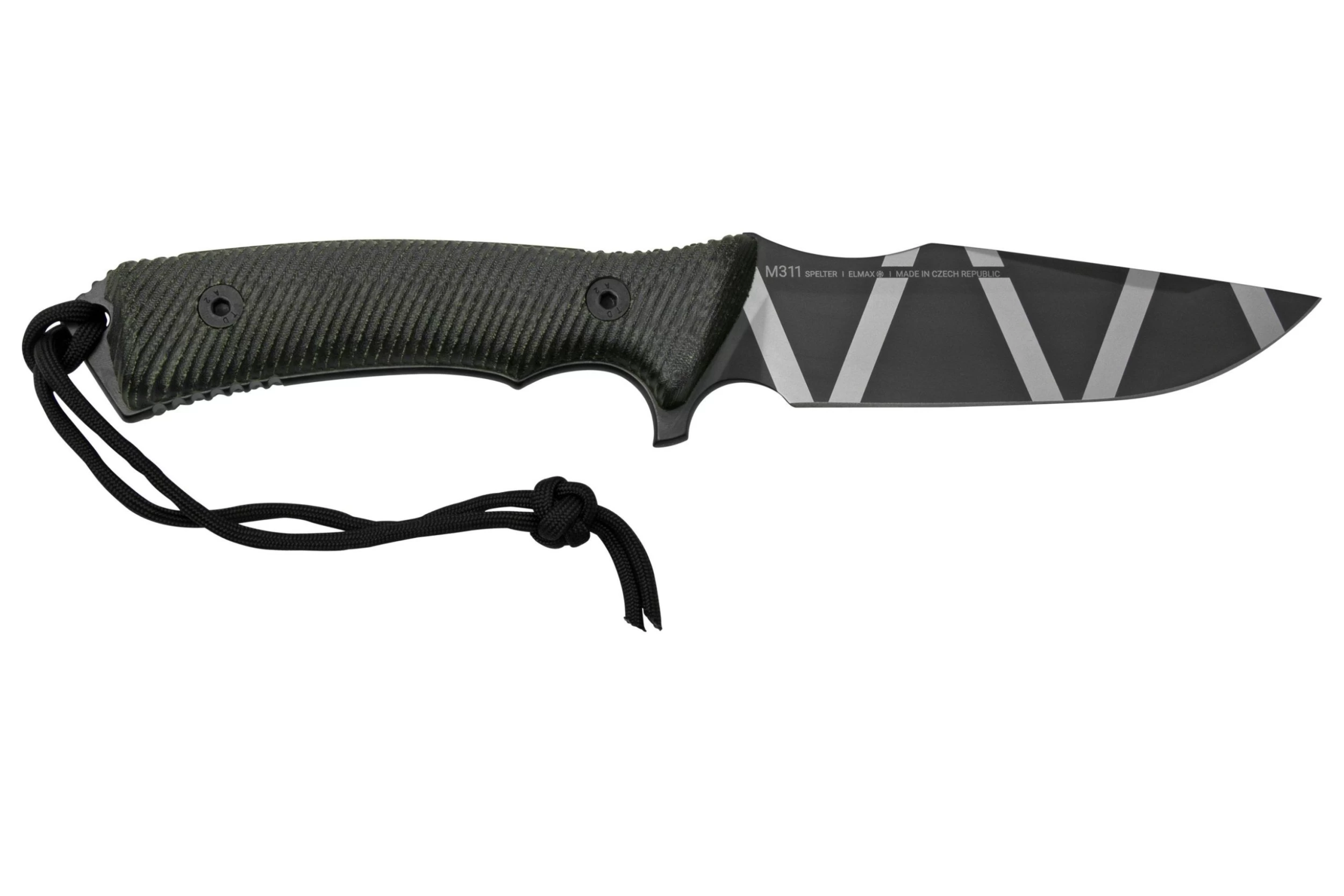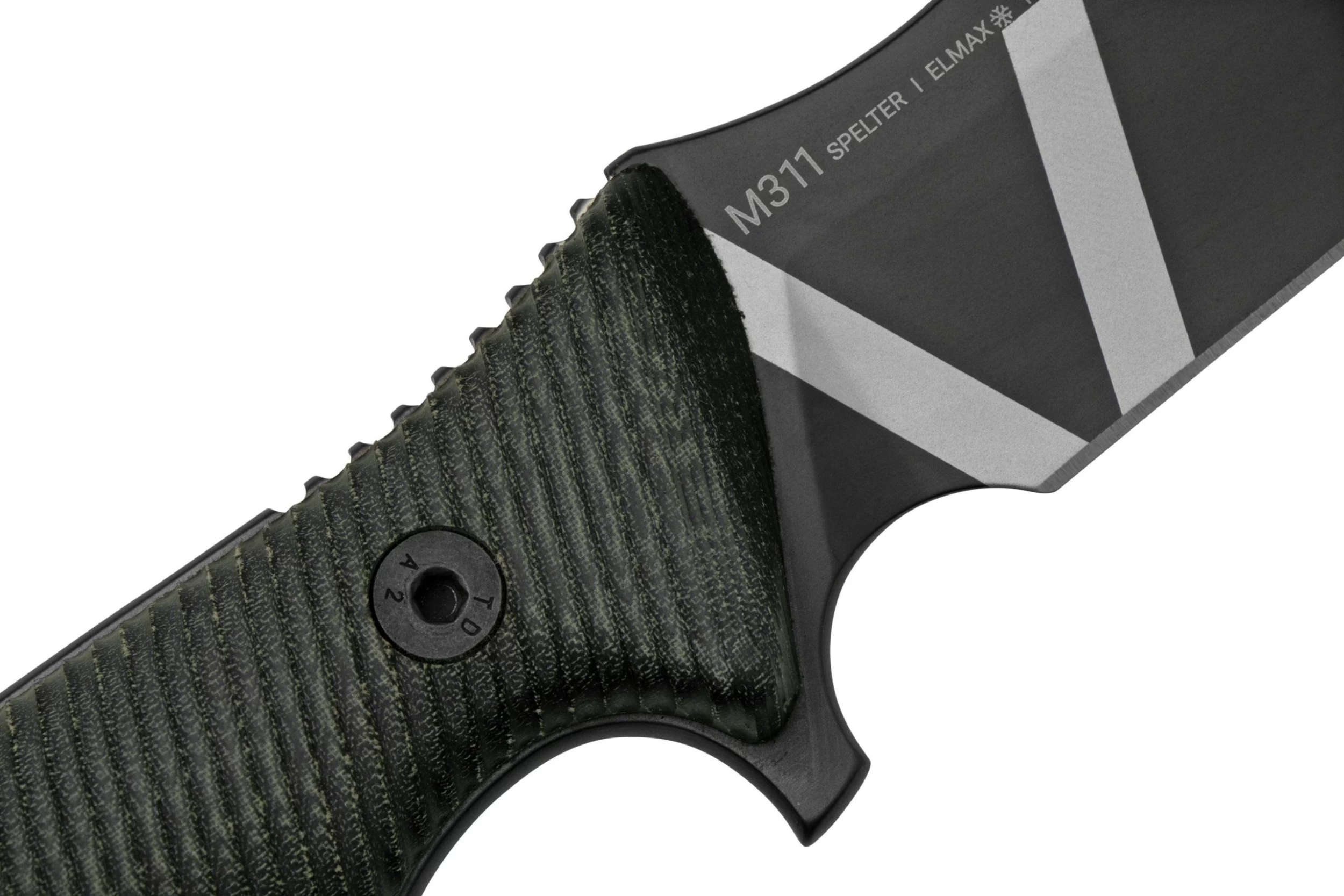 ANV Knives M311 SPELTER DLC Camo Elmax, Black Micarta Handle, Black Kydex Sheath, Cuchillo De Supervivencia