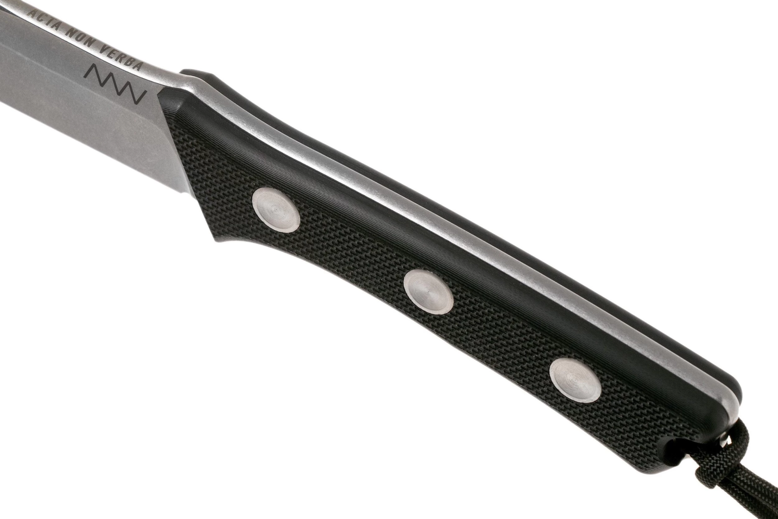 ANV P300 N690, Black G10 P300-015, Black Leather Sheath, Cuchillo De Supervivencia