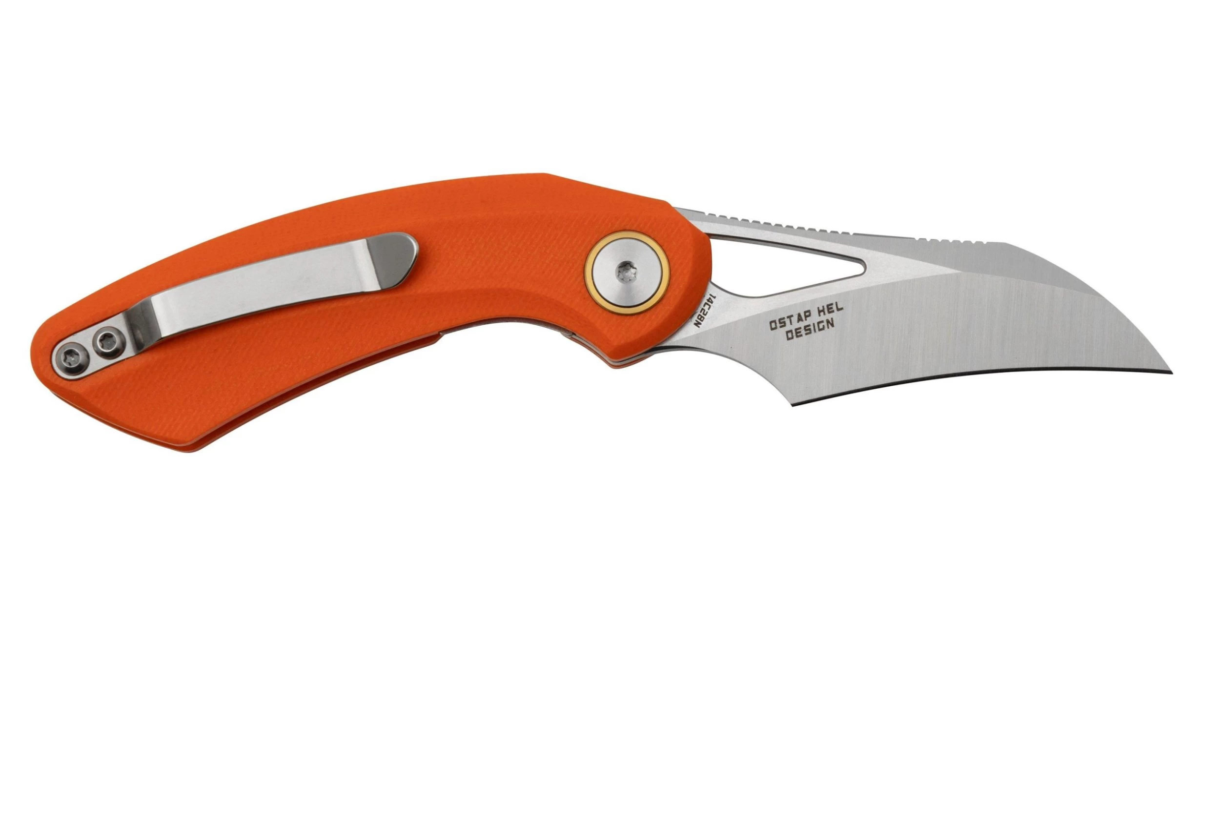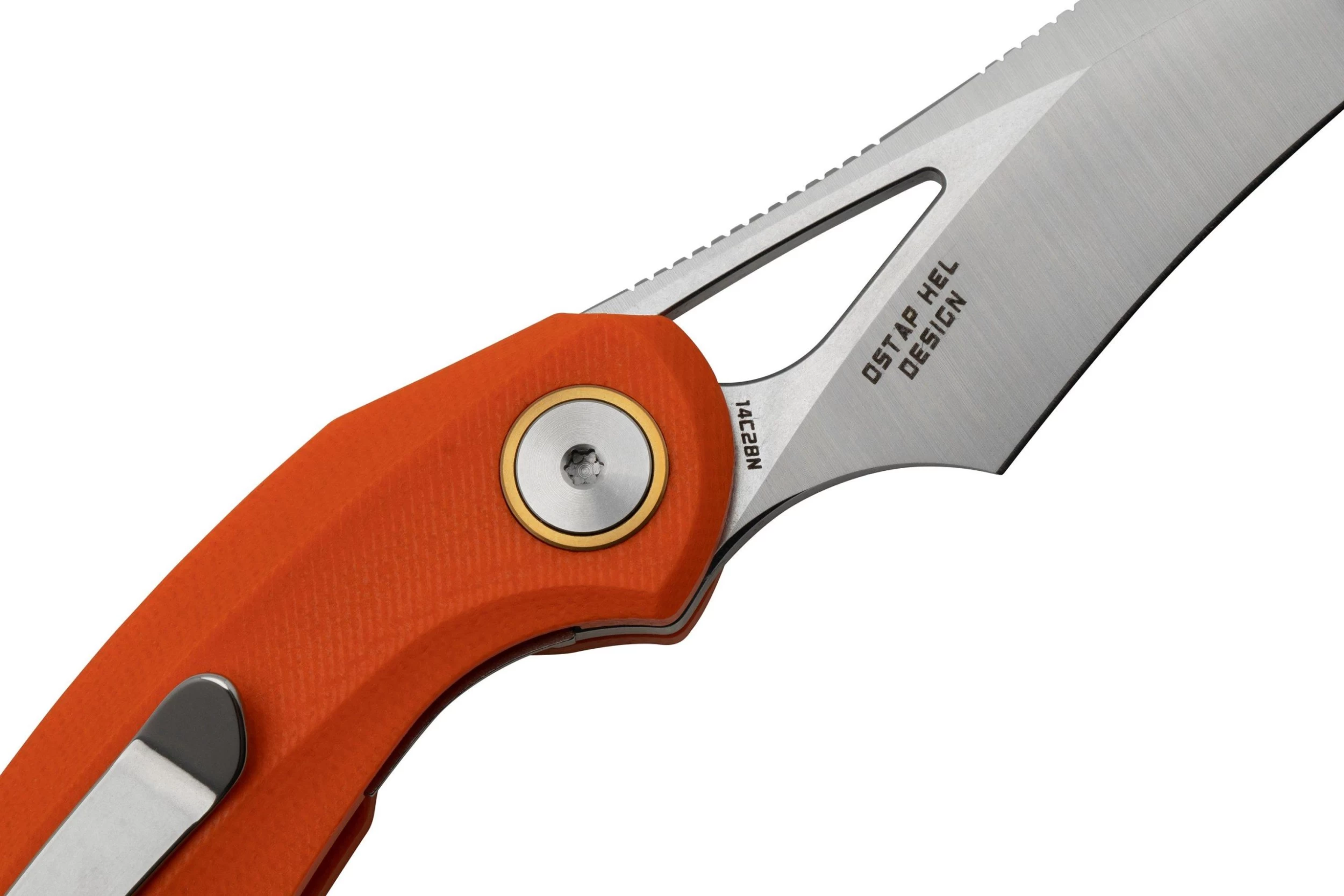 Bestech Bihai Stonewashed Satin, Orange G10 BG53B-1 Navaja, Diseño Ostap Hel