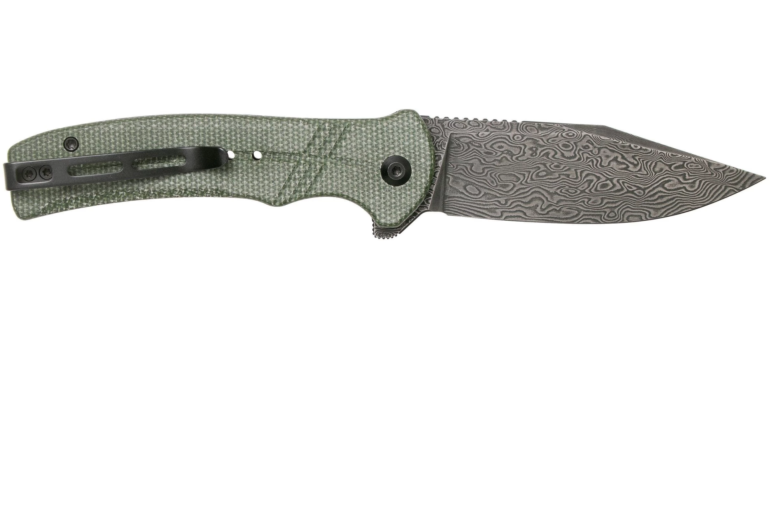 Civivi Cogent C20038D-DS1 Damascus Plain Edge, Green Micarta Navaja