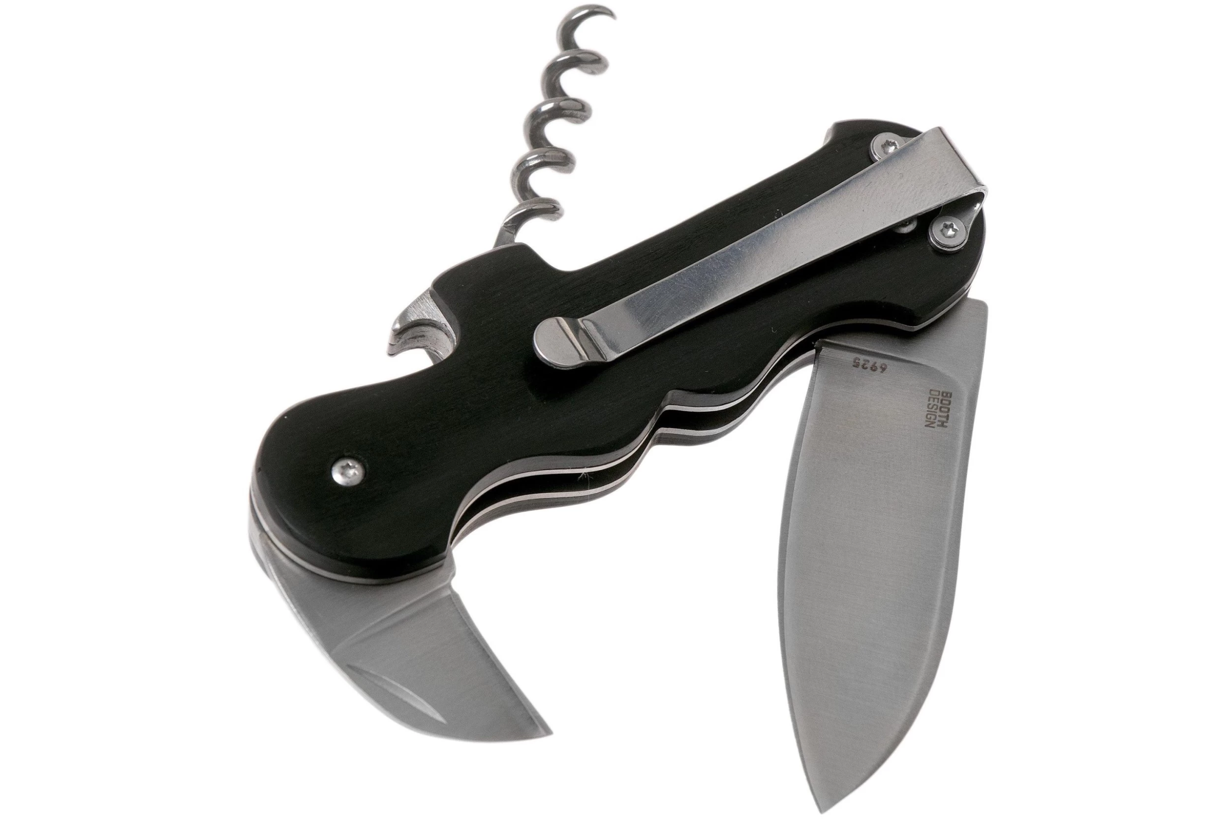 La CRKT Triple Play Black 6925 es una navaja multifuncional. ¡La navaja es concretamente mejorada con cuatro funciones! Especialmente los amantes de una buena bebida disfrutarán de la CRKT Triple Play. ¿Abrir una botella de vino? No hay ningún problema: con la hoja más pequeña se puede quitar fácilmente el papel de aluminio. A continuación, utiliza el sacacorchos para extraer el corcho. Con el abridor de botellas integrado puedes abrir una bebida fría.