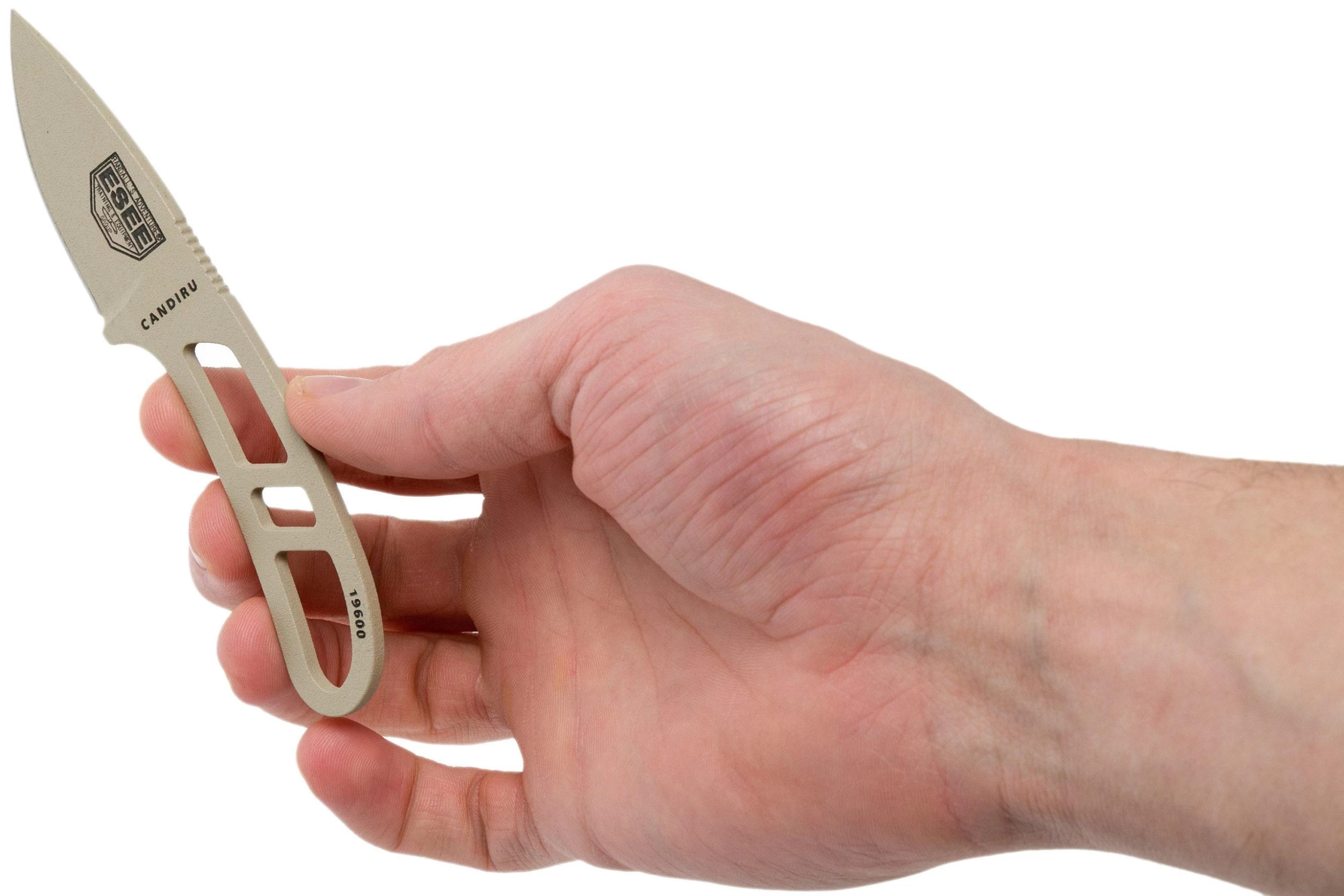 ESEE Candiru Desert Tan CAN-DT Cuchillo De Cuello Con Funda Negra + Clip De Cintur贸n