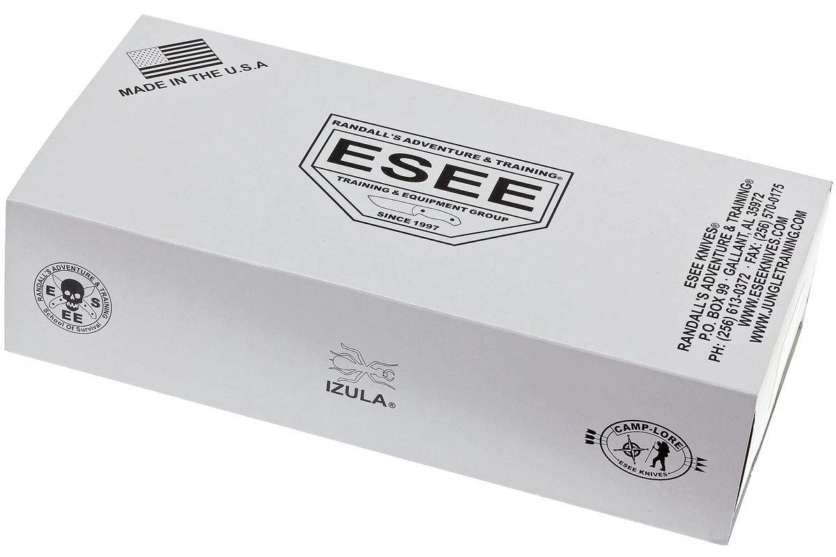 El Esee Izula recibe su nombre de una agresiva hormiga de la selva peruana. Simboliza que el cuchillo no deber铆a ser subestimado por su tama帽o. El Izula es un cuchillo fijo muy vers谩til. Se puede guardar f谩cilmente en una bolsa o se puede llevar como un cuchillo de cuello. A pesar de su tama帽o, proporciona un agarre realmente bueno. El cuchillo tiene un agujero en la parte posterior que proporciona un agarre extra cuando se pasa el dedo me帽ique por 茅l. Por supuesto, tambi茅n puedes crear t煤 mismo un mango de paracord para conseguir un mejor agarre. ESEE tambi茅n dispone de accesorios de agarre aut茅nticos si lo prefieres. Entonces el cuchillo, obviamente, se vuelve un poco m谩s grande.