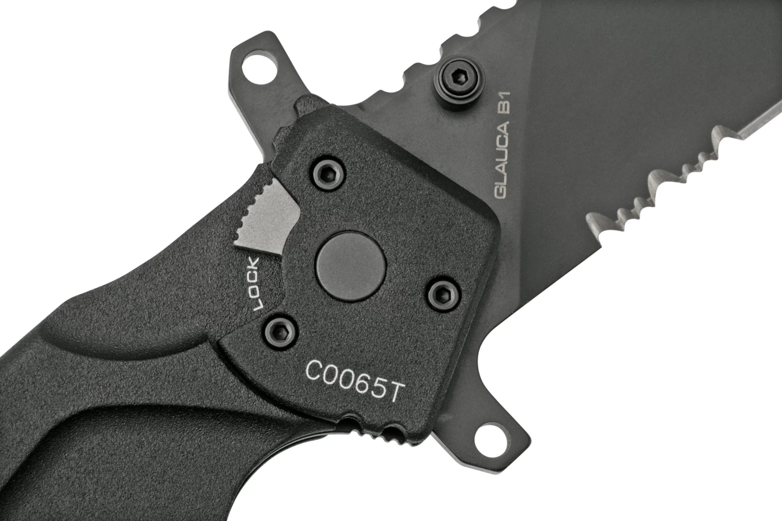 La Extrema Ratio Glauca B1 Tanto es una navaja versátil y táctica. El cuchillo está mejorado con un rompe cristales y una herramienta especial en el lomo del mango para cortar las esposas de plástico. Esta herramienta funciona como un cúter y se utiliza haciendo clic en el backspacer del mango. Funciona como un mango para los alicates.