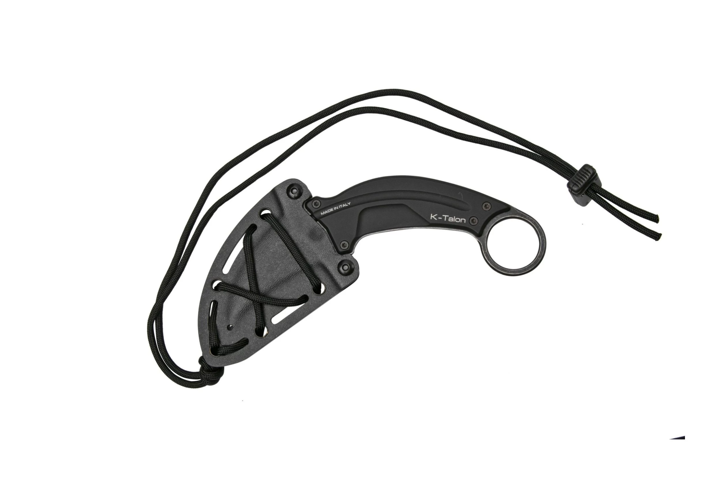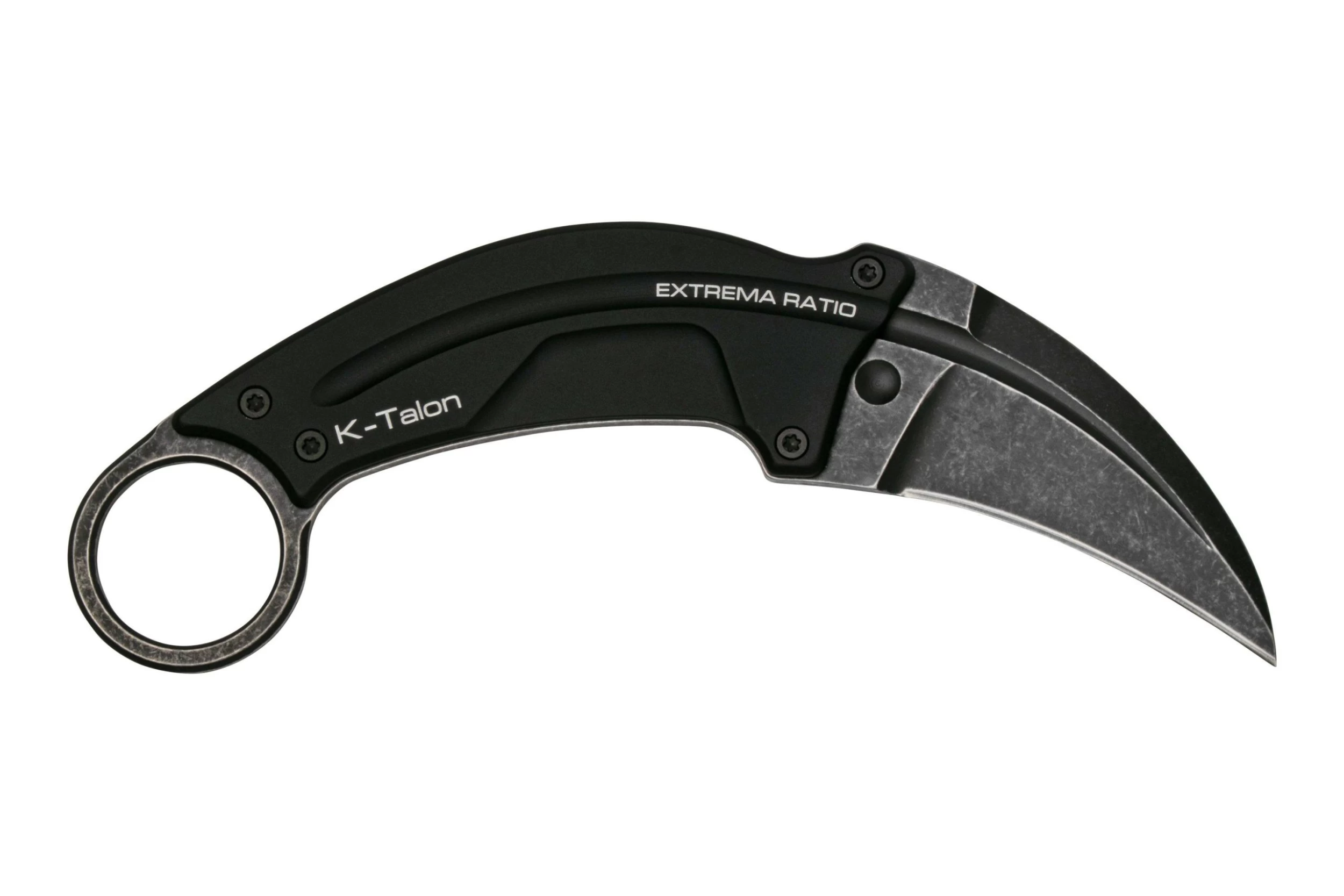 El Extrema Ratio K-Talon es un cuchillo de karambit compacto. El cuchillo es increíblemente robusto gracias a su construcción full-tang. Esto significa que la hoja y el anillo están hechos de una sola pieza de acero, en la que se montan las cachas.