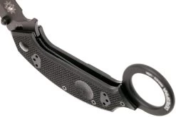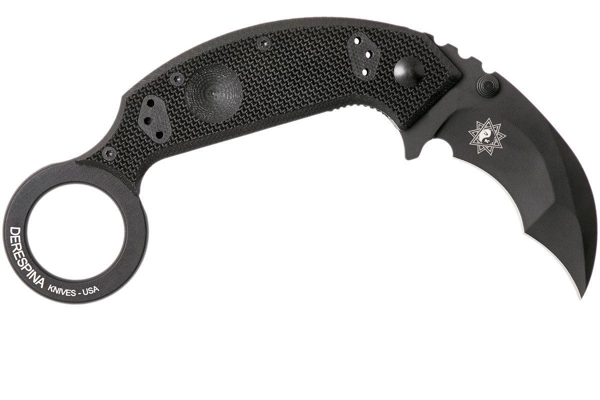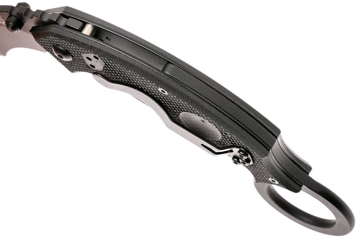 El Fox Derespina Karambit es un cuchillo karambit genial, hecho en Italia. Fox es conocido por sus karambits y este Derespina es otro excelente ejemplo. Es impresionante y sorprendente de usar gracias a la forma de su hoja. El doble filo hueco se apodera realmente del material. No hay forma de escapar de ello. Con este cuchillo se puede cortar rápidamente la cuerda. La transición entre las dos superficies de corte funciona un poco como un gran dentado.