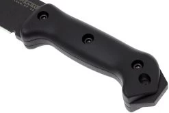 El KA-BAR Bk2 Companion es uno de los cuchillos más pesados de nuestra gama. Este cuchillo puede arreglárselas solo. La hoja tiene un grosor de 6,6 mm y está hecha de acero carbono 1095. Este tipo de acero no es resistente a la oxidación. Por suerte, la hoja está mejorada con un revestimiento negro para asegurarte un mantenimiento mucho más fácil. Gracias a su grosor y a las cualidades permisivas del acero 1095, este cuchillo puede con todo, es casi imposible romperlo. Además, el cuchillo es fácil de afilar, por lo que es increíblemente popular.