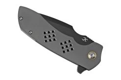 La Kansept Entity es una navaja muy chula, diseñada por Nalu Knives. Nalu es un prometedor diseñador de Hawai. Los recortes en el mango hacen que el cuchillo tenga un aspecto único y ahorran peso. La hoja se abre con la ayuda del flipper. Una vez abierto, el cuchillo se bloquea mediante un sólido cierre framelock que está reforzado con una inserción metálica. Se coloca el pulgar en el lomo de la hoja. Como tal, se puede ejercer bastante presión sobre ella. Perfecto para las tareas de corte más detalladas.