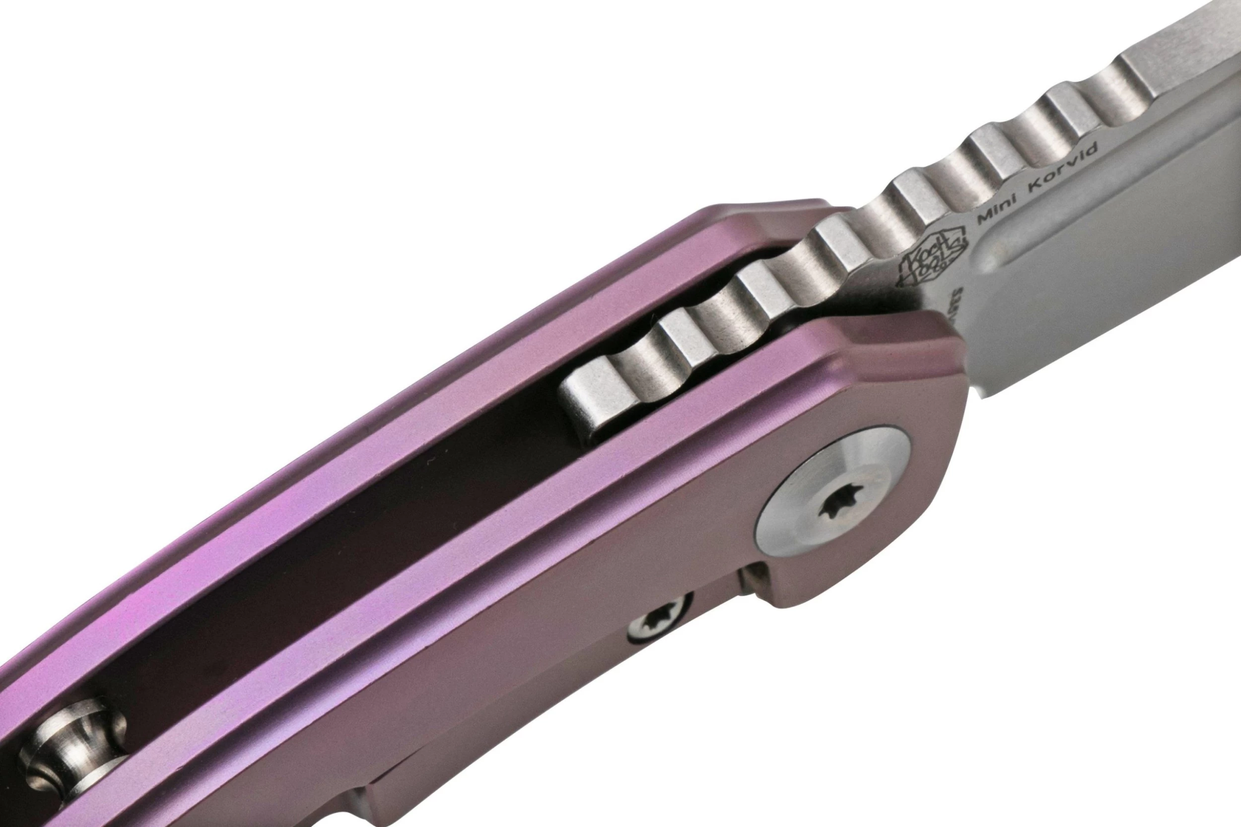 Kansept Mini Korvid K3030A4 Satin CPM-S35VN, Purple Titanium Navaja, Diseño Justin Koch