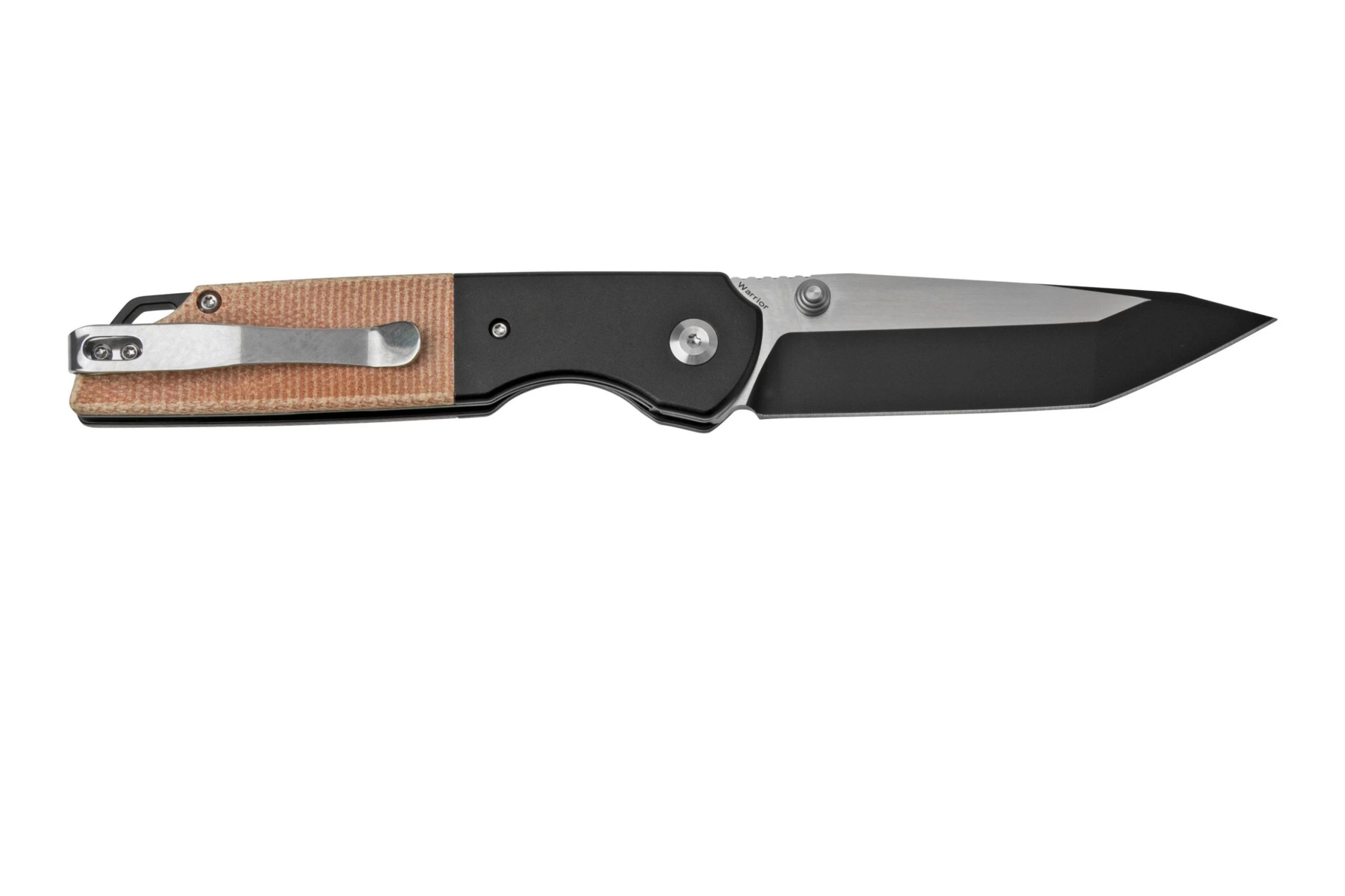 Kansept Warrior T1005T5 Black Tanto, Brown Micarta Navaja, Diseño Kim Ning