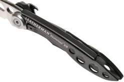 El cuchillo Skeletool de Leatherman es una navaja ligera y compacta, basada en la multiherramienta Skeletool de Leatherman. Los entusiastas reconocerán inmediatamente este cuchillo como parte del Skeletool. Leatherman básicamente ajustó el marco y el clip de bolsillo un poco, la hoja en sí y la parte frontal del mango son los mismos que en la multiherramienta Skeletool.