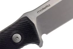 El LionSteel M5 es un cuchillo fijo de uso general. Este cuchillo puede ser utilizado como un cuchillo de supervivencia, pero también es un gran cuchillo de caza. La hoja de acero Sleipner está endurecida hasta 60-61 HRC. La longitud de la hoja de este cuchillo es de 11,5 cm. En el lomo de la hoja, alrededor de la transición del mango, se encuentra una pequeña parte que sobresale. Es tan pequeña que apenas se nota, pero lo suficientemente grande como para ofrecer al pulgar más agarre. Todo el lomo tiene un bonito acabado, algo que se ve a menudo en los cuchillos italianos. El mango G10 está bellamente decorado y tiene surcos de agarre sutiles. Esto confiere al cuchillo un aspecto refinado y elegante.