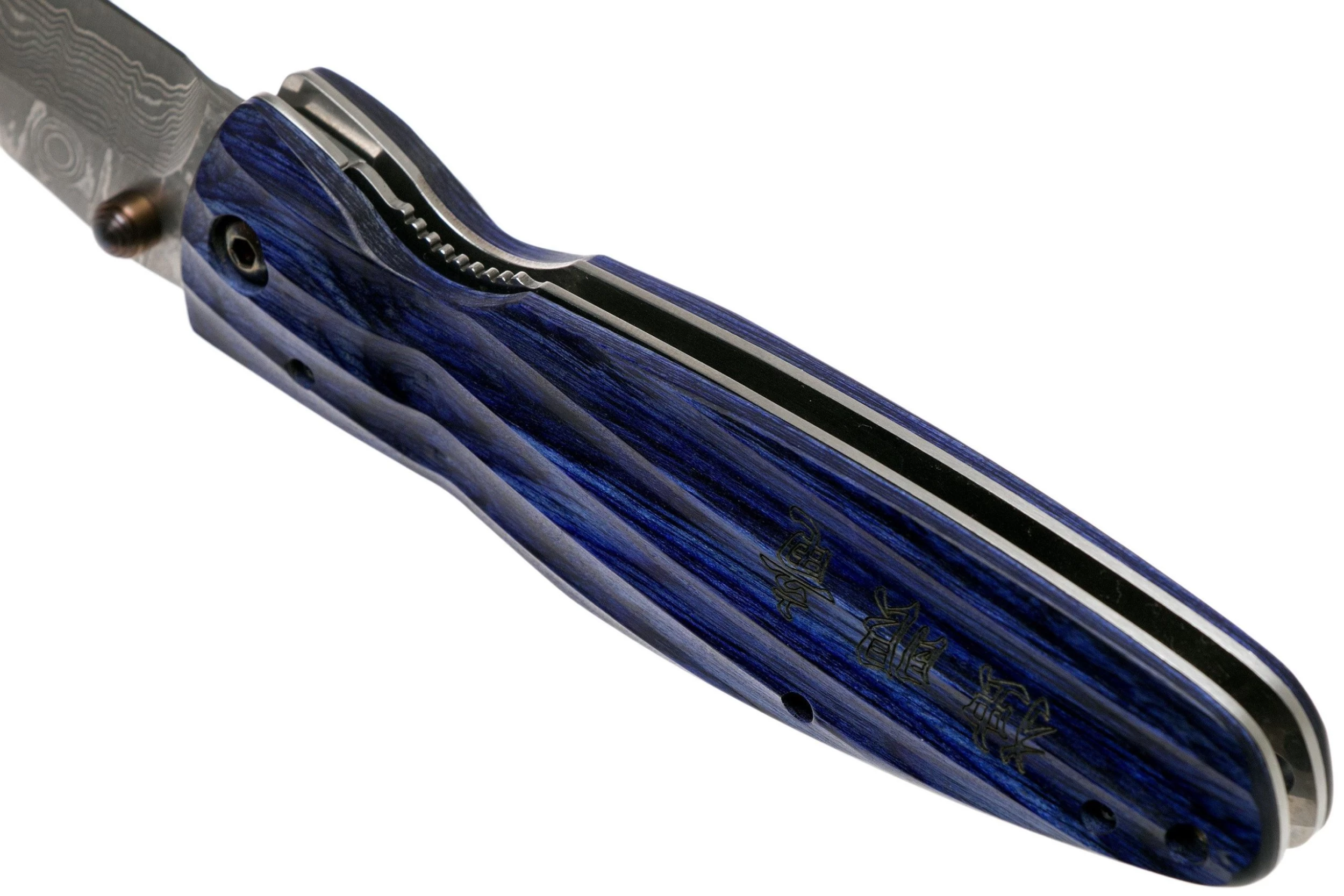 La Mcusta MC-0183D Sengoku Tokugawa Ieyasu es una extraordinaria navaja japonesa, mejorada con impresionantes detalles. La hoja está compuesta por un núcleo de acero VG10 con caras de níquel damast. El filo es, como nos tienen acostumbrados los fabricantes japoneses, muy afilado. El mango es extraordinario. La madera de pakka azul está fresada en 3D para conseguir un aspecto y un tacto impresionantes. ¡Increíble!