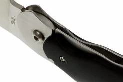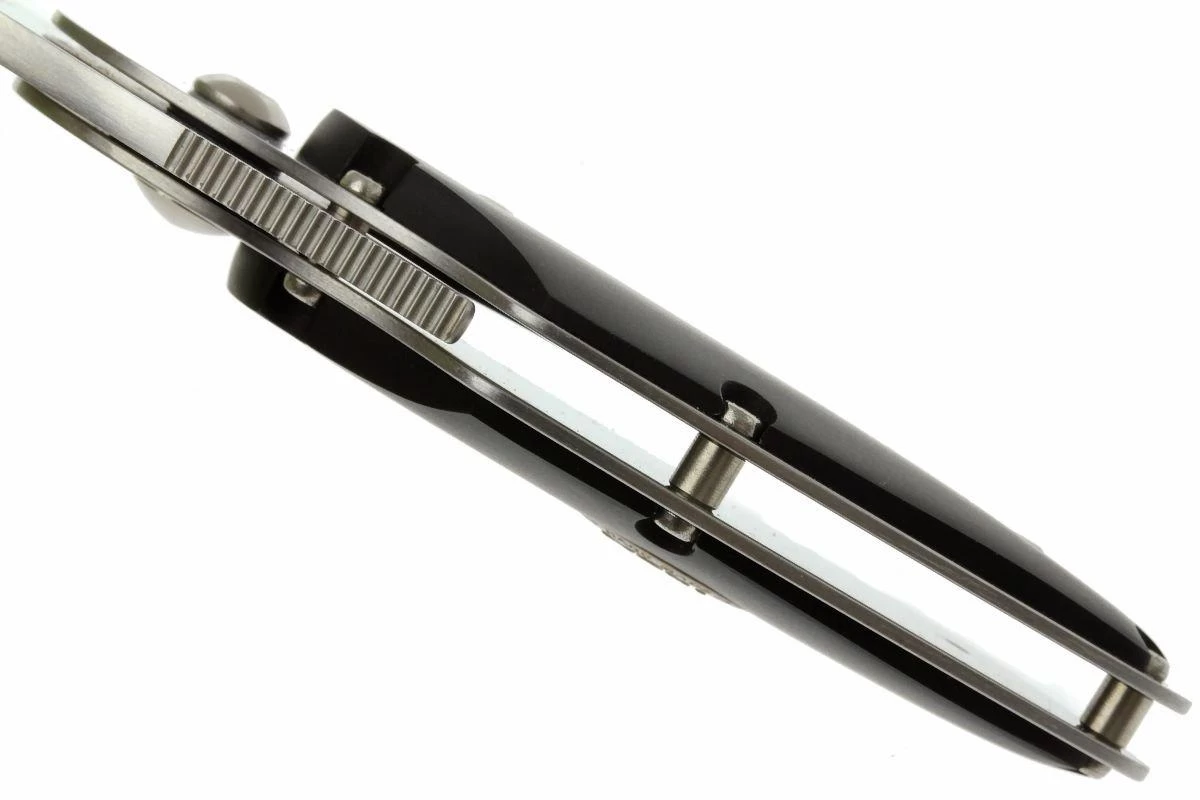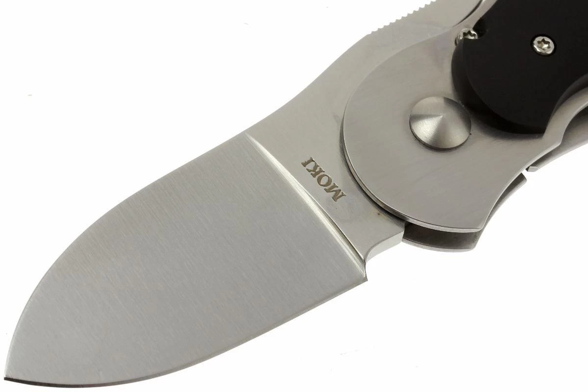 La Rabbit de Moki es una navaja compacta con un diseño muy especial. Una pequeña palanca permite desplegar fácilmente la hoja. Esto puede hacerse tanto con una como con dos manos. Dada la naturaleza del cuchillo, a menudo se utilizan las dos manos. Con el pulgar colocado en la curva del fondo y el índice en la palanca se abre la hoja de acero VG10 de forma muy natural. Debido a que el cuchillo es un poco más alto, tiene una cantidad sorprendente de agarre. Las ondulaciones de la palanca mejoran aún más el agarre. La hoja se bloquea en posición desplegada con un framelock.