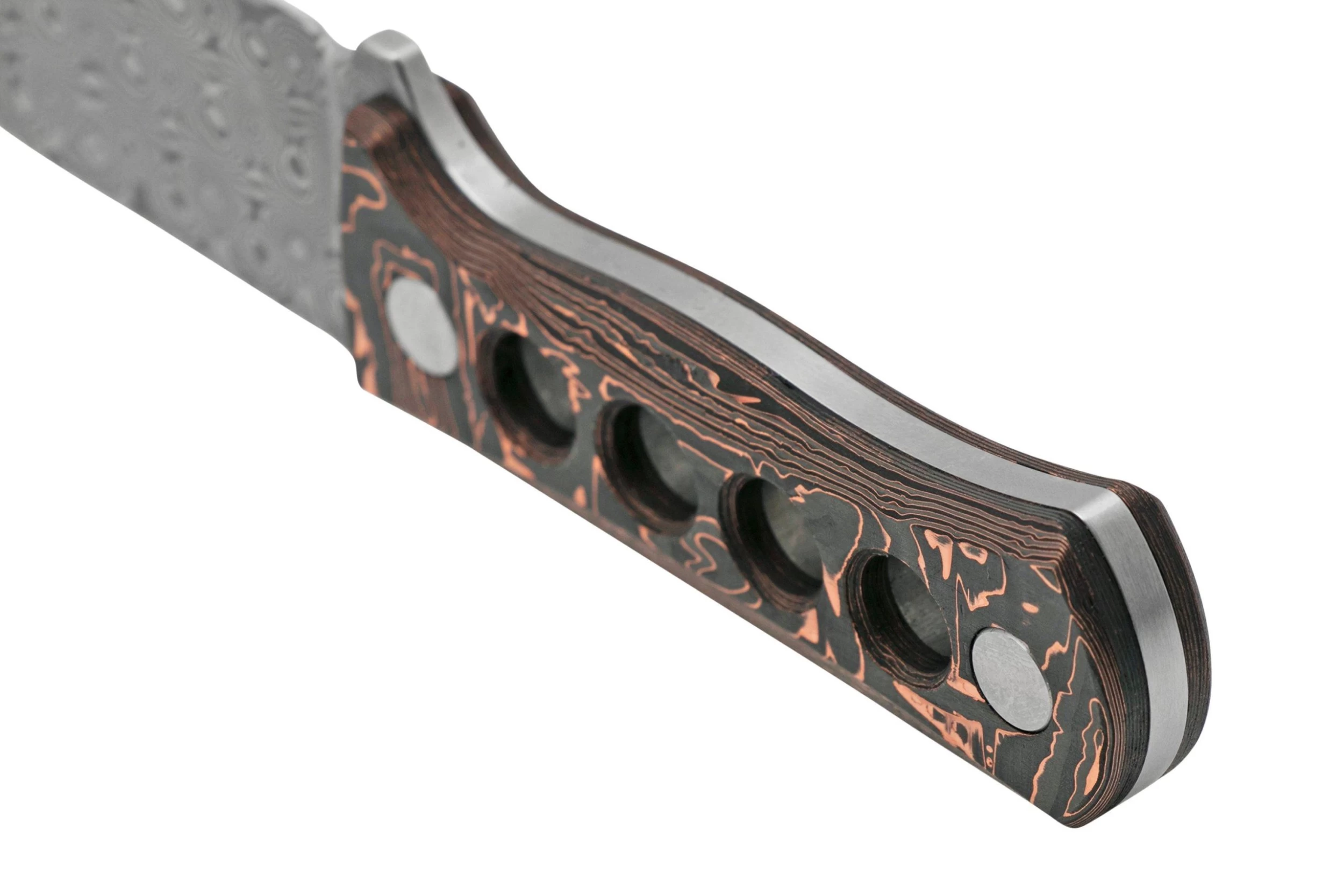 QSP Knife Canary QS141-F Damascus, Copper Foil Carbon Fibre, Cuchillo De Cuello
