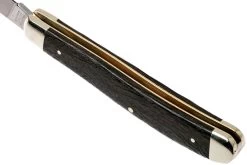 La Rough Ryder Muskrat es una navaja clásica y genial. Como su nombre puede sugerir, esta navaja fue diseñada originalmente para una tarea muy específica: desollar ratas almizcleras. Por supuesto, esto ya no es una tarea cotidiana para muchos hoy en día, pero la historia lo convierte en una divertida pieza de conversación. Lo que caracteriza a esta navaja es que tiene dos hojas, ambas exactamente iguales. Podrías pensar que esto es relativamente inútil, pero es todo lo contrario. Originalmente, esta navaja fue diseñada teniendo en cuenta la necesidad de afilar el cuchillo. Si la primera hoja está desafilada, puedes utilizar simplemente la segunda hoja, bien afilada. Por lo tanto, nunca tendrás que trabajar con un cuchillo sin filo. Se abren todas con las dos manos y un slipjoint evita que se cierren involuntariamente, aunque no bloquea completamente las hojas. Como tal, puedes llevar esta navaja legalmente en muchos lugares de Europa.