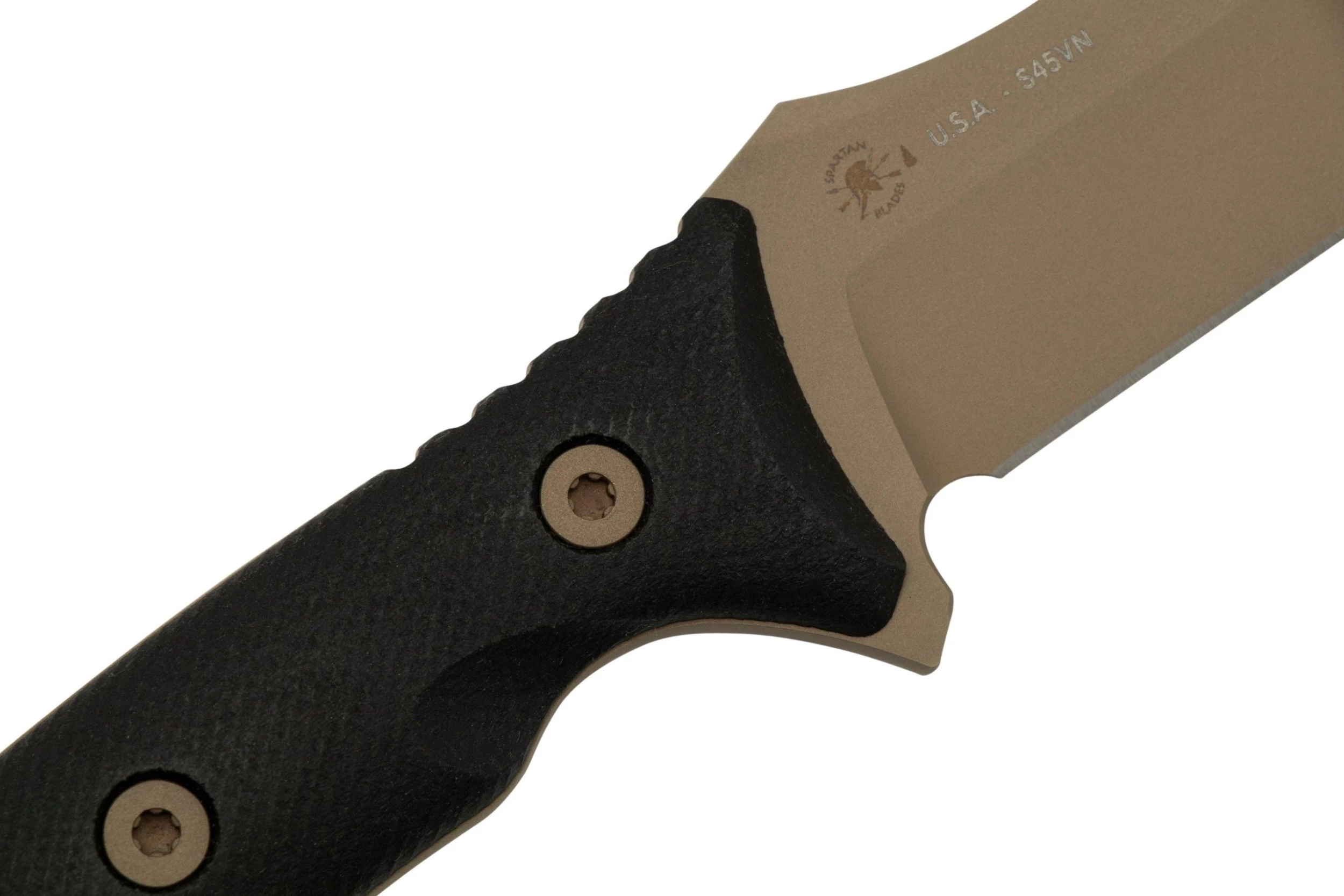 El Spartan Blades Moros es un resistente cuchillo de supervivencia, fabricado en EEUU. Su perfil es bastante delgado, pero sigue siendo adecuado para su uso al aire libre gracias a su construcción de colmillo completo y materiales de alta calidad. Exactamente lo que caracteriza a Spartan Blades. Curtis Lovito y Mark Carey, fundadores de Spartan Blades, tienen ambos antecedentes militares. Teniendo en cuenta ese grupo objetivo, diseñaron el Spartan Moros. El cuchillo encaja perfectamente con el resto de tu equipo militar y puedes afrontar fácilmente los retos de un despliegue.