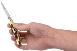 La Uncle Henry Premium Stockman 897UH es una navaja clásica asequible. Tiene tres hojas: una punta de clip, una pata de cordero y una pluma. Este cuchillo se diseñó originalmente como cuchillo de caza, pero también resulta útil como cuchillo de caballero.